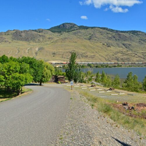 At the outlet of Kamloops Lake in Savona, 40 km west of Kamloops on Hwy 1.