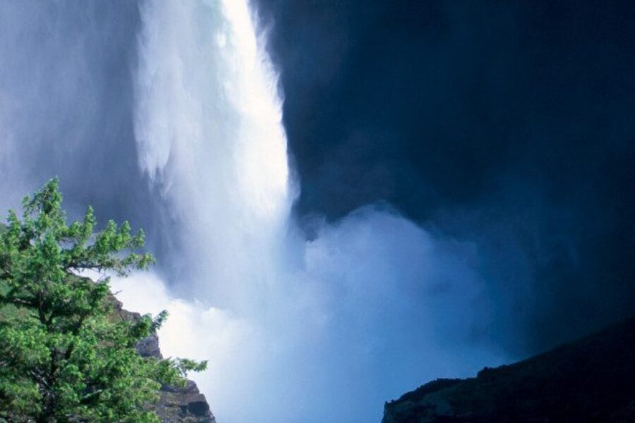 Along the best-known access route into Wells Gray Park from Clearwater; 65 km from information centre on the park road.